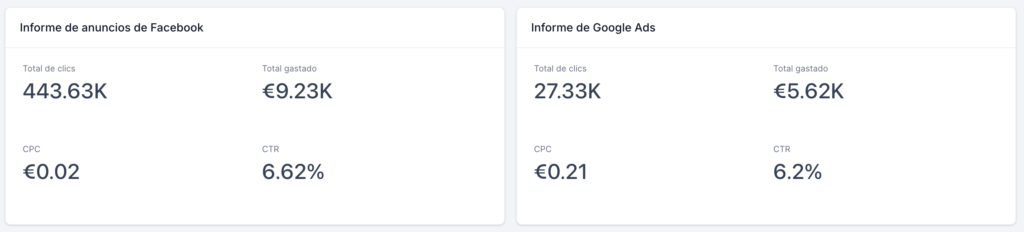 During that period, OCF's campaigns on Facebook Ads and Google Ads generated more than 470,000 combined clicks with a total investment of less than 15.000 €. The most striking fact is not the volume — it's the cost: €0.02 per click on Meta and €0.21 on Google, with CTRs higher than 6% on both platforms.